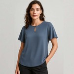 • Fluted sleeves allow for extra breathability, a good alternative to sleeveless tops